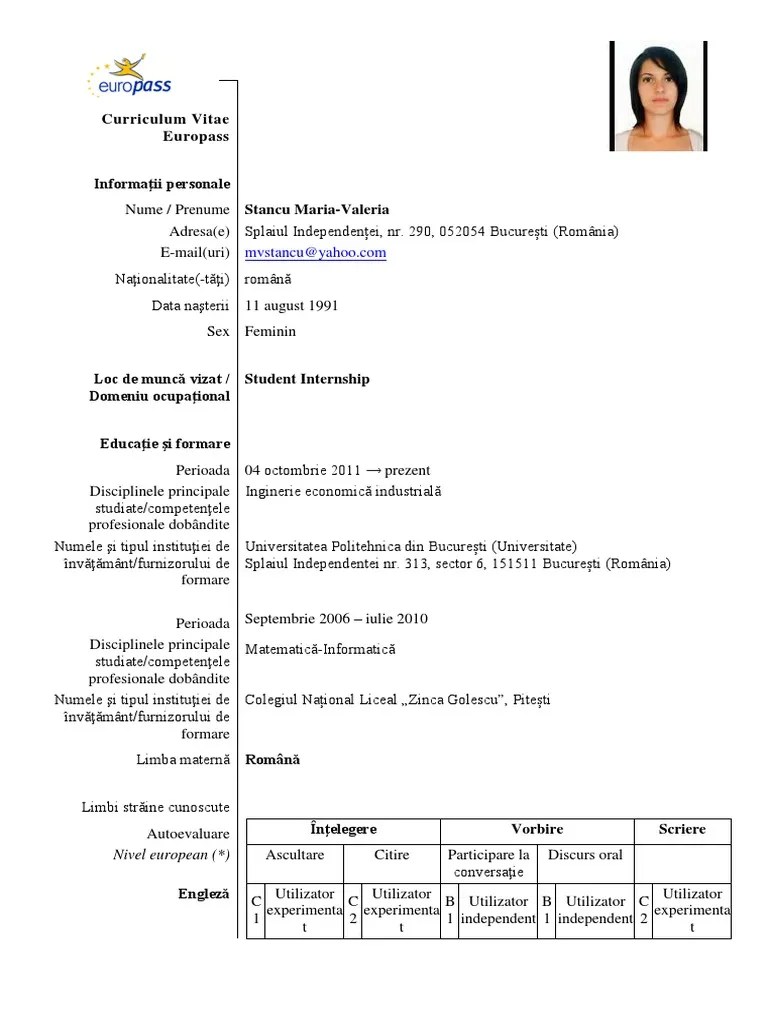 Model Cv Europass In Limba Romana : Pdf Cv Europass In Romanian Short Var 1 1 6 A4 Pages 13 11 2019 Dr Dragoi S Cv In Europass Format In Romanian Short Variant With Recommendations / My euro cv europass resume wednesday, april 27, exemple curriculum vitae in engleza.. Curriculum vitae europass va permite prezentarea calificarilor,. My euro cv europass resume wednesday, april 27, exemple curriculum vitae in engleza. Download model cv european scris in limba romana sau engleza. Nume / prenume nebancea bianca alexandra adresa(e) comuna mtsari, jud. Limba(i) maternă(e) precizaţi limba(ile) maternă(e) (dacă este cazul specificaţi a doua limbă maternă,.
